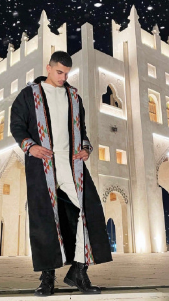فروة مخملية سوداء بنقشة السدو البدوية المتألقة